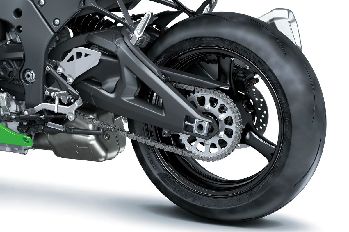 The 2026 ZX-10R is fitted with twin 330 mm Brembo discs with M50 Monobloc calipers and a radial-pump master cylinder. This is all backed by Kawasaki’s Intelligent Braking System (KIBS). Rear is a single 220 mm disc with a single-piston caliper. Lightweight 17-inch wheels keep the handling neutral, and the stock rubber is ready for fast street work or your next track session.