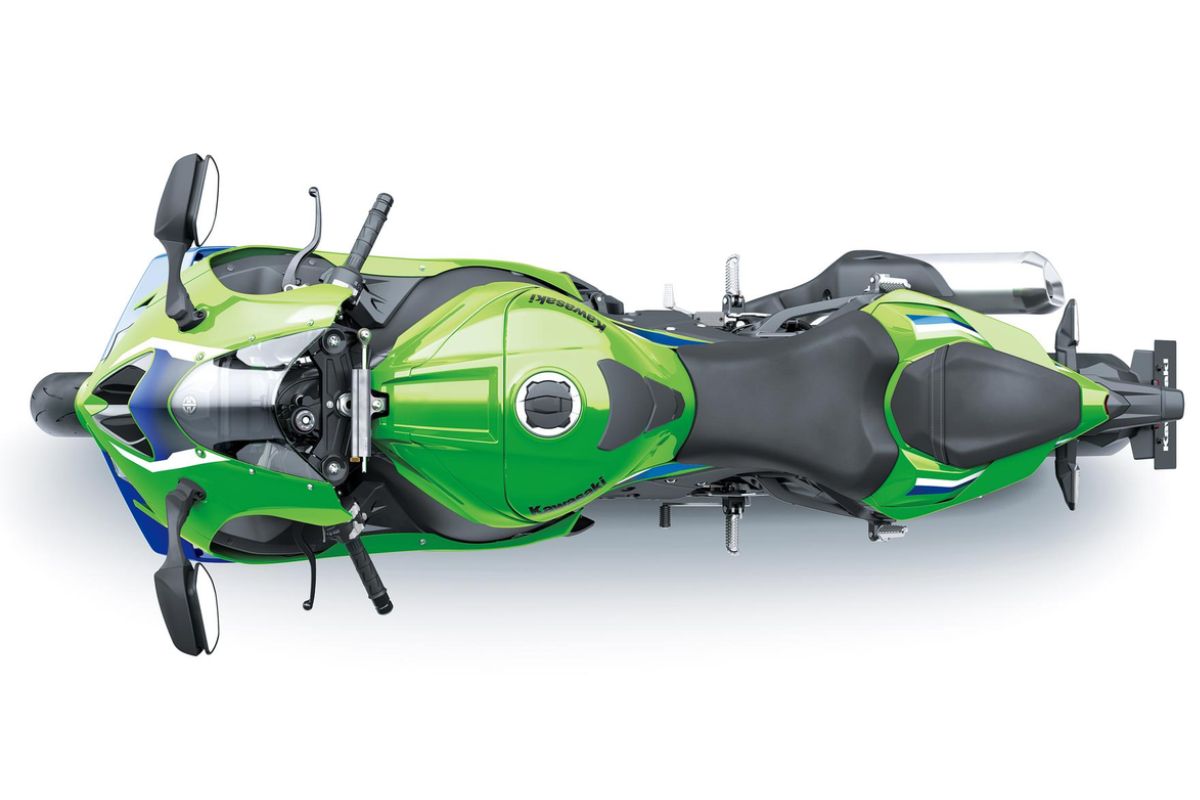 The ergonomics are still unapologetically aggressive. High pegs, low clip-ons, and a compact cockpit designed to tuck in. Kawasaki reshaped the front cowl, Ram Air intake and screen to reduce drag and help you stay planted at speed.