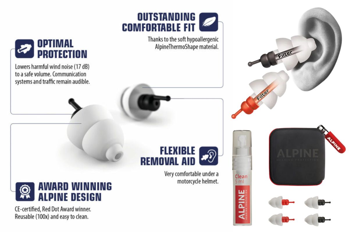 Alpine MotoSafe earplugs are designed specifically for motorcyclists, using acoustic filtering rather than total sound blockage. This approach reduces harmful wind noise while allowing riders to retain awareness of traffic, engine feedback and communication systems. The earplugs are helmet friendly and intended for extended wear without discomfort.