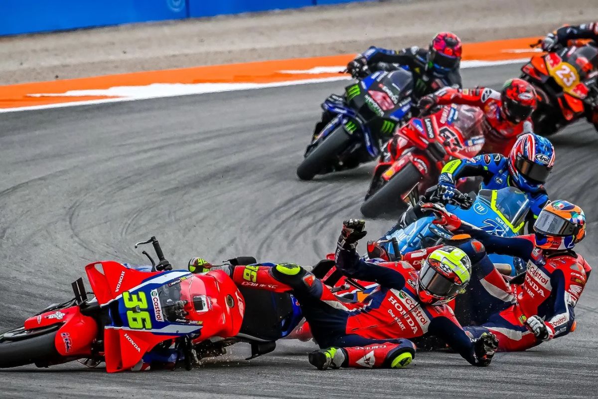 During the opening lap, Baltus’ bike got spooked by Canet checking up abruptly on the inside of Turn Two, which sent him on a collision course with a totally oblivious Muñoz. The duo went tumbling off with Baltus executing a perfect over-the-bars dismount before coming down hard on the tar run-off.