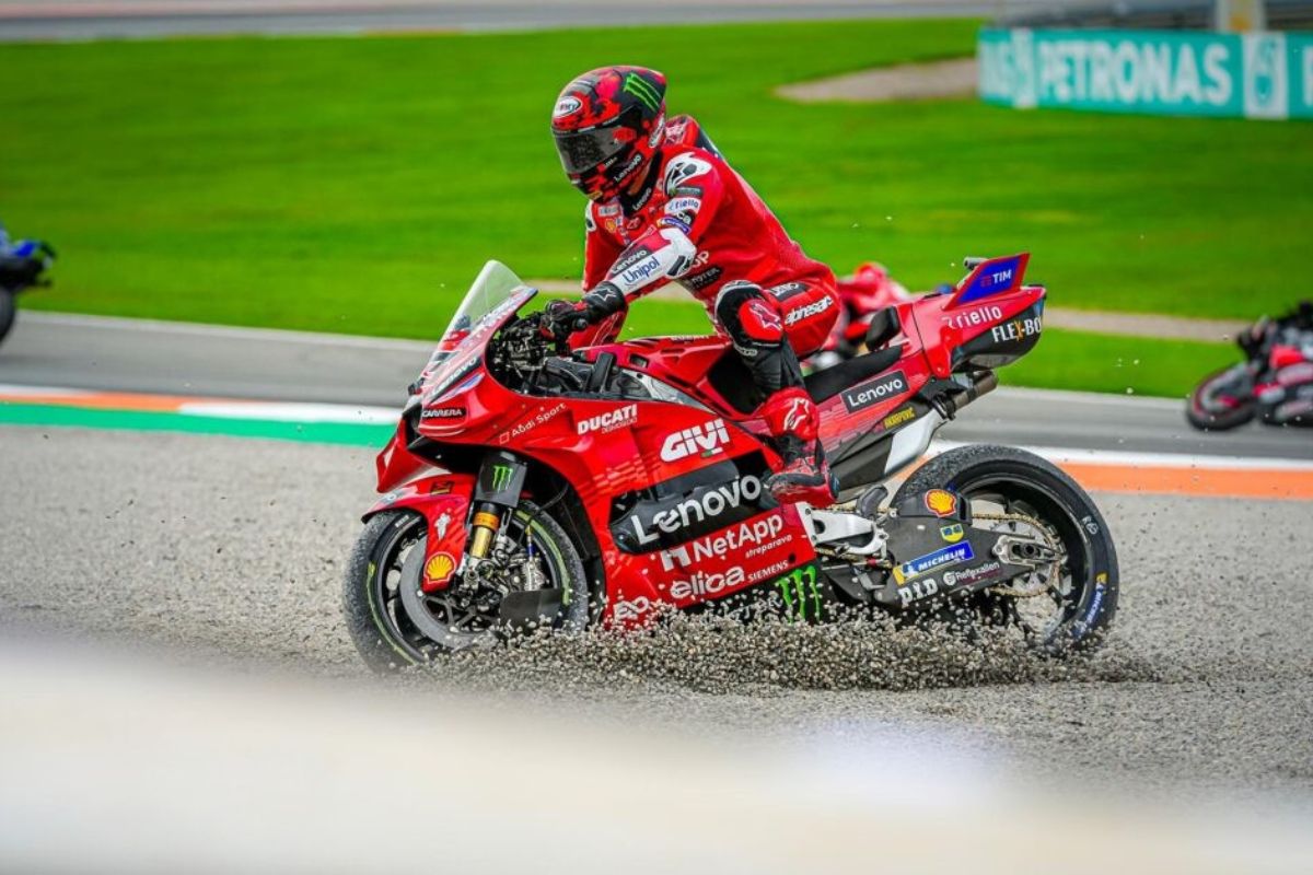 Bagnaia took a moment, sitting on his knees in the kitty litter, to lament his 2025 season and perhaps considering just how relieved he was that it was over.