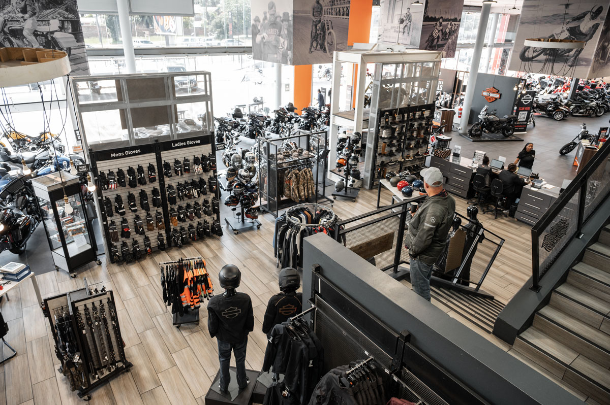 It’s an amazing store to visit with gleaming rows of motorcycles, HD apparel and accessories, a fully stocked parts department and a seriously modern, up to date workshop.