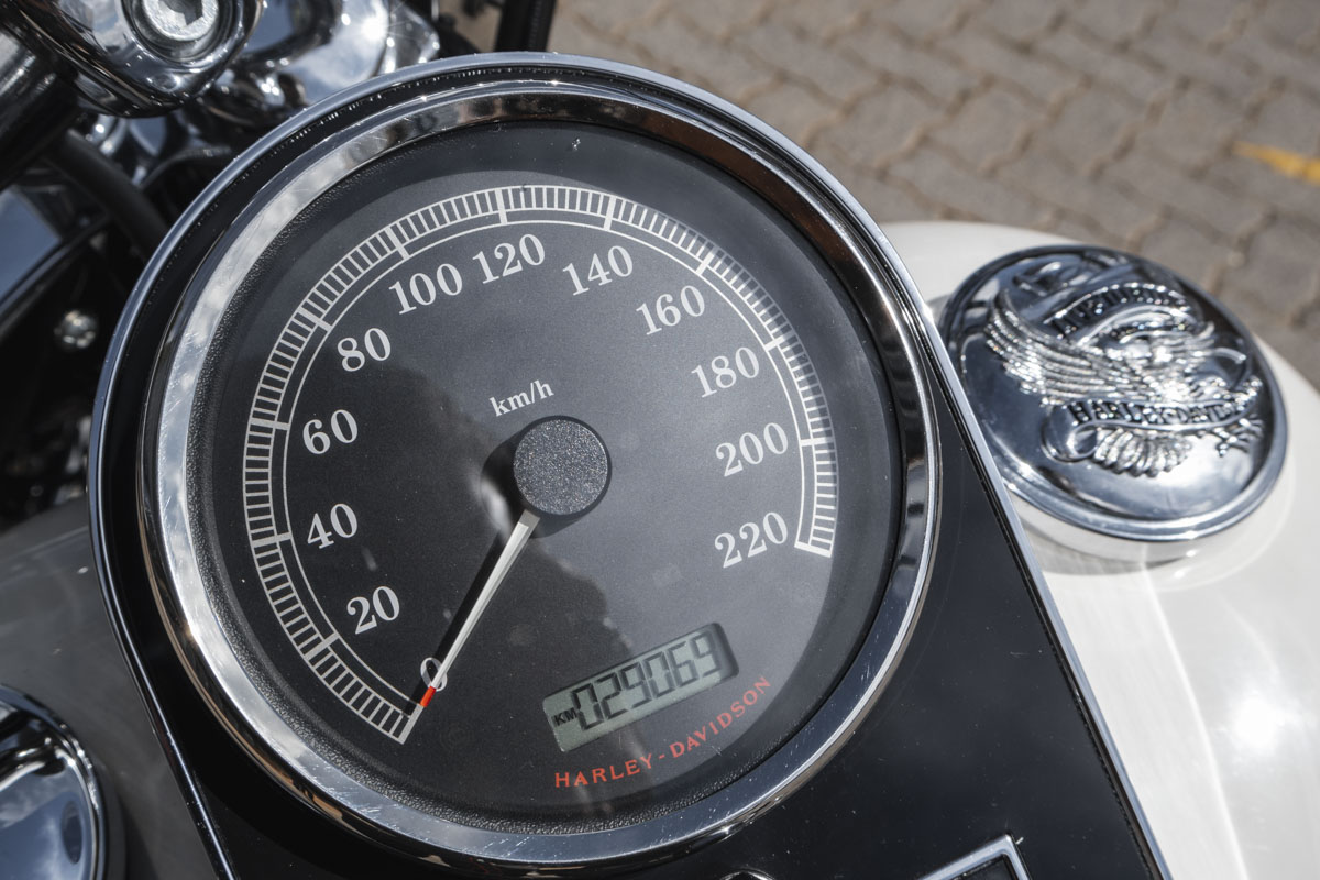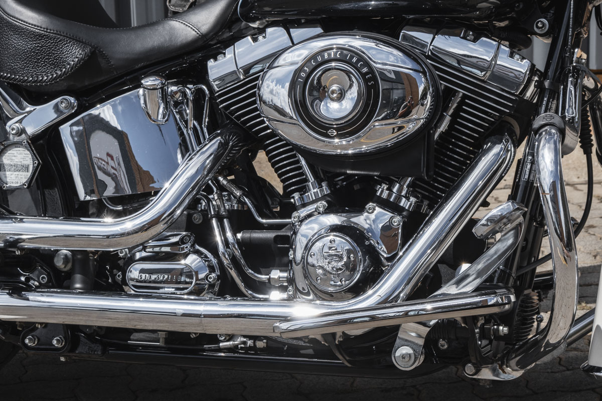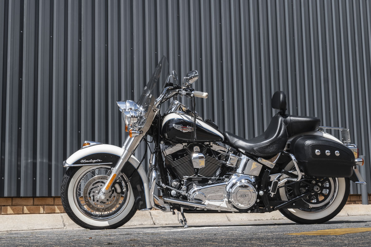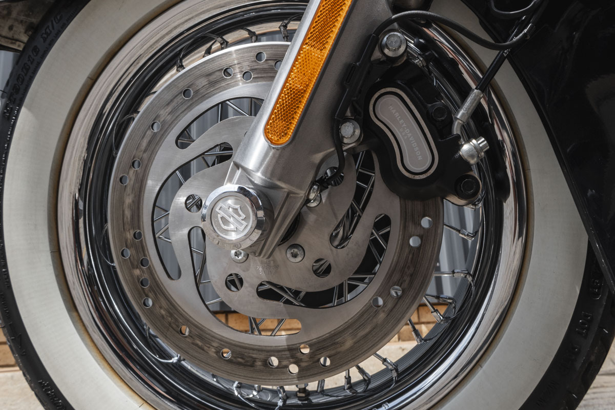 The Softail frame gives you that rigid, hardtail silhouette, clean, uninterrupted lines from the steering head to the rear axle, but hides a modern rear suspension system. So while it looks like it belongs in a black-and-white photo, it rides like something you can actually live with.