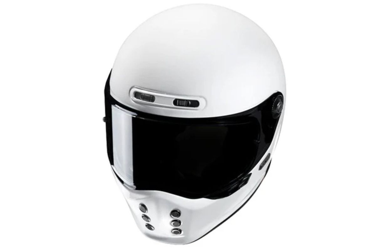 When HJC first revealed the V10, we thought they nailed the design. It takes cues from other classic-style auto racing helmets – think Simpson, Jebbs, Bell, Arai.