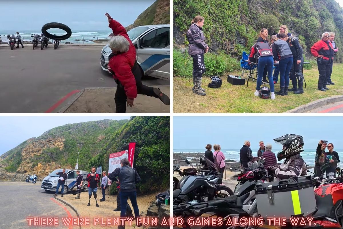 We followed Gerda and her trusty Africa Twin down past the airport and through Herolds Bay, where the first challenge involved hurling tyres and solving upside-down puzzles. Chantelle Bester, the service and parts wizard at the dealership, proved that handling tyres all day at work pays off, she flung that thing like Thor’s hammer.