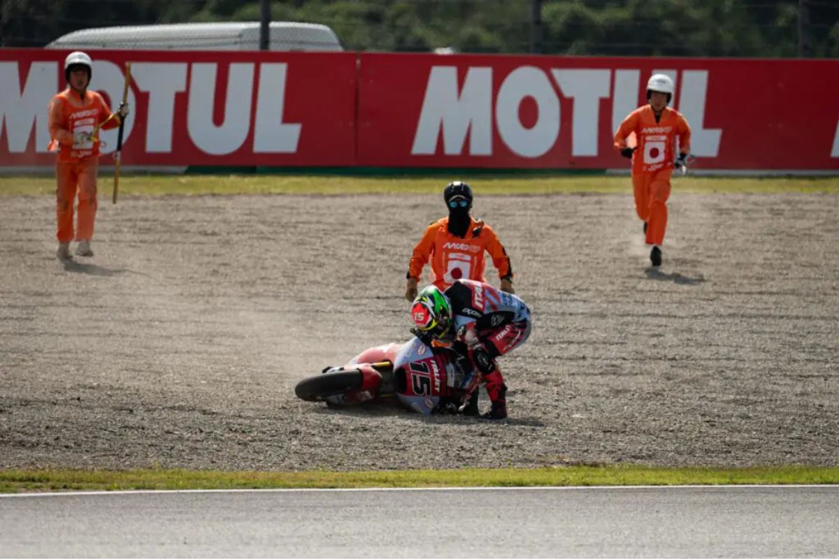 Upon further inspection, Martín was found guilty of starting the whole thing, shooting down the inside of the corner with zero hope of exiting it upright. He went down on his right side hard enough to trigger a light earthquake, before headbutting his teammate Bezzecchi with enough force to send Marco, feet first, into temporary orbit.