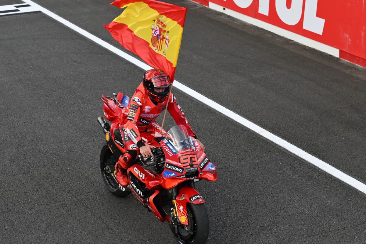 For a while the podium was all but forgotten as Marc deafened any team member dumb enough to be listening in on his microphone with shouts of pure joy. He had officially claimed the 2025 MotoGP World Champion title, the first rider to ever return to being champ after a hiatus of more than five years, and pulling up even with Rossi with a total of seven MotoGP titles.