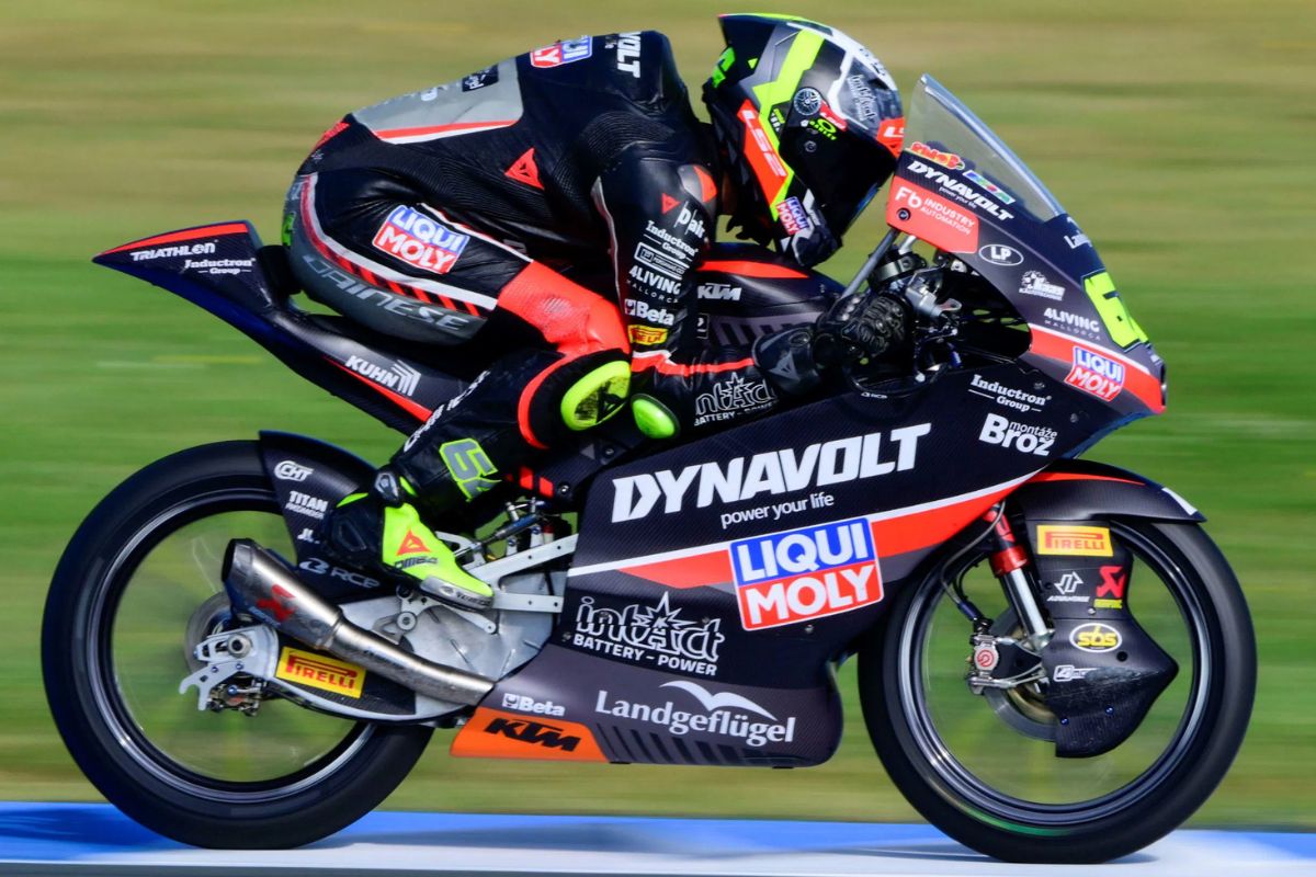 We welcome back a (mostly) healed Bertelle to the Moto3 grid, after six months of healing from a proper Motocross clattering.