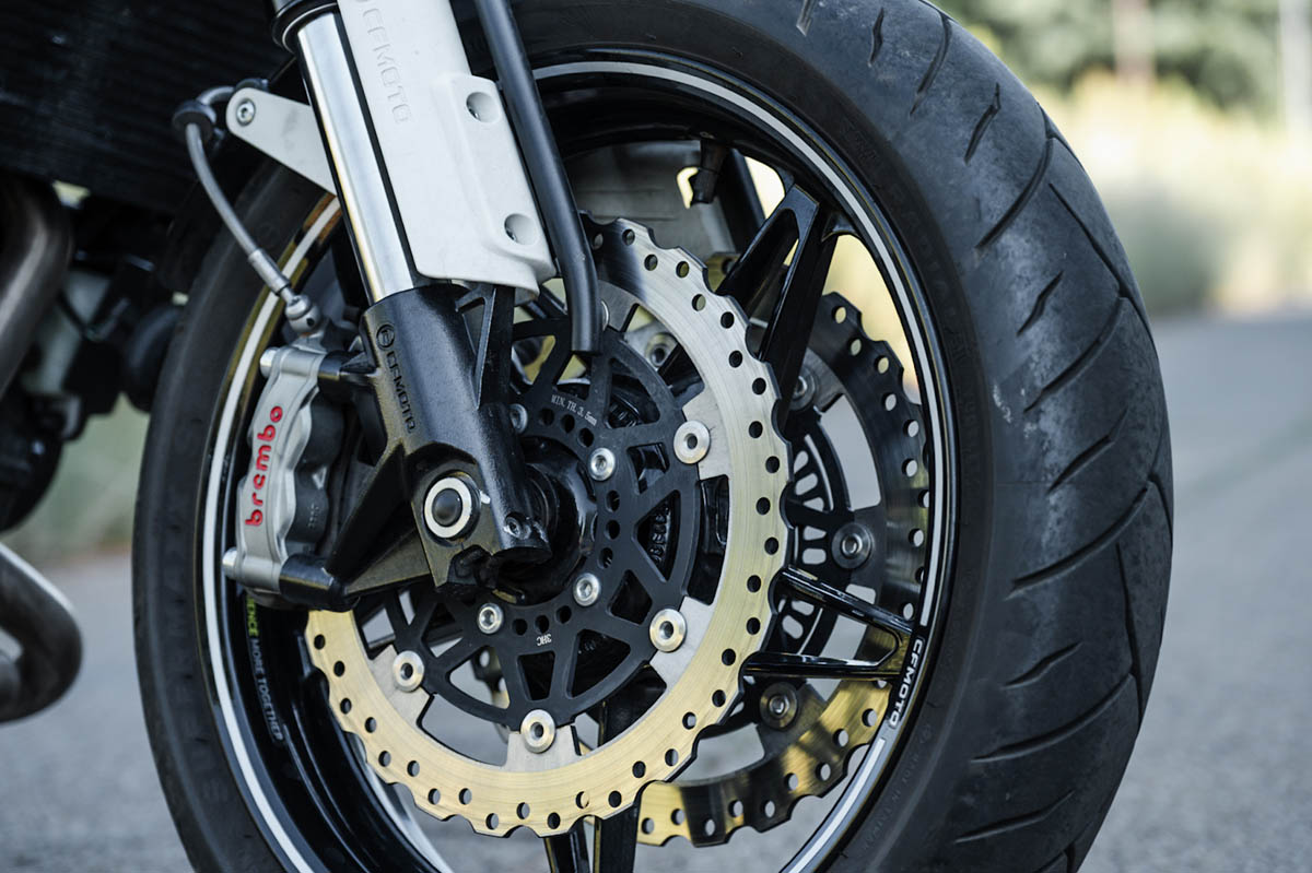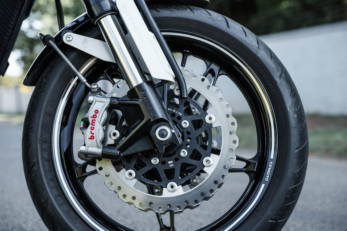 Speaking of brakes, CFMOTO has fitted the 700CL-X Sport with some quality components, and one of those is the Brembo Stylema brake system with braided brake lines and dual discs up front. A great touch! Oh yes! The ABS is faultless.