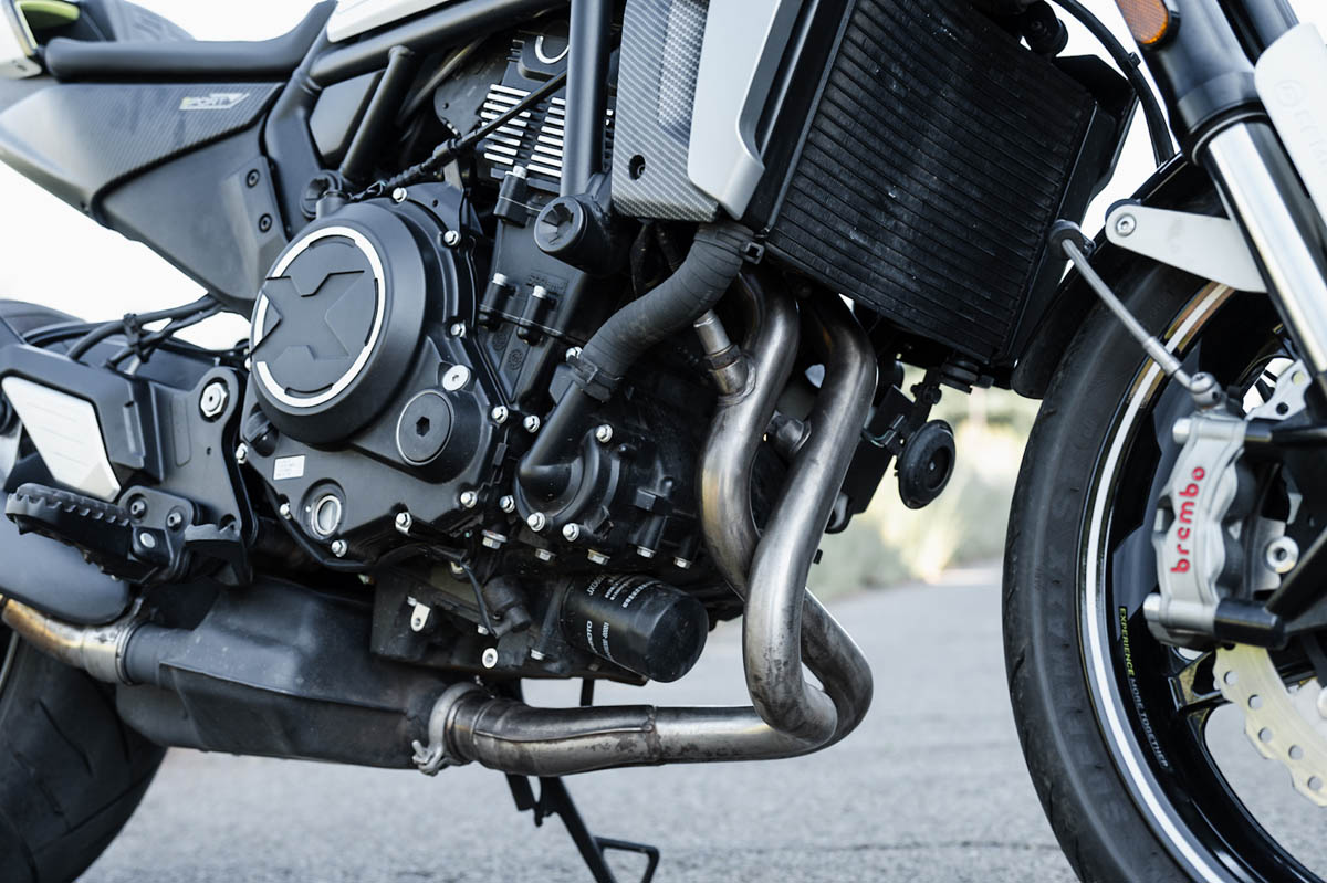 The CLX is Powered by a liquid-cooled, double-overhead-cam, parallel-twin, 693 cc engine that churns out a claimed 74 horsepower at 8,500 rpm. The engine is mated to a chain final drive through a slipper clutch.