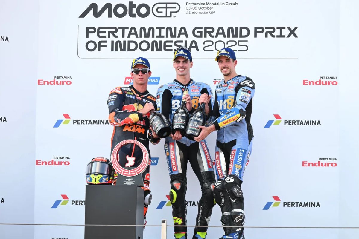Zarco chucked his Honda into the gravel like a Beyblade gone rogue, and by the final lap, Bezzecchi had reeled in Aldeguer. The two swapped passes until Bezzecchi nabbed victory, Aldeguer took second, and Raúl Fernández claimed his first MotoGP podium in third. Binder finished eleventh.