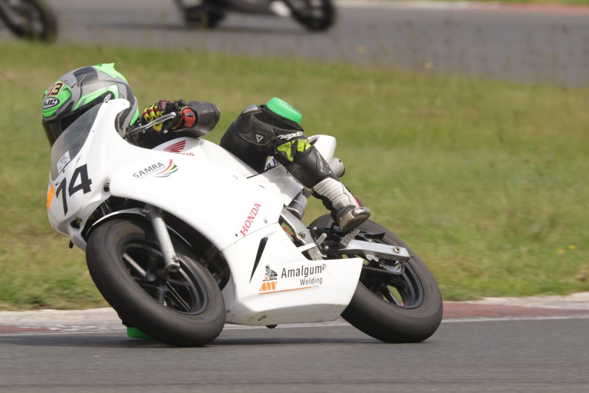 The SAMRA youngsters didn’t hold back. #17 Liam Bronkhorst led early, with #74 Zian Andalaft applying pressure throughout. After a few close moments, Bronkhorst held firm for the win, Andalaft 2nd, and #28 Tyler Purificati 3rd.