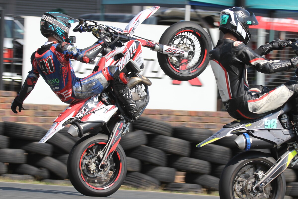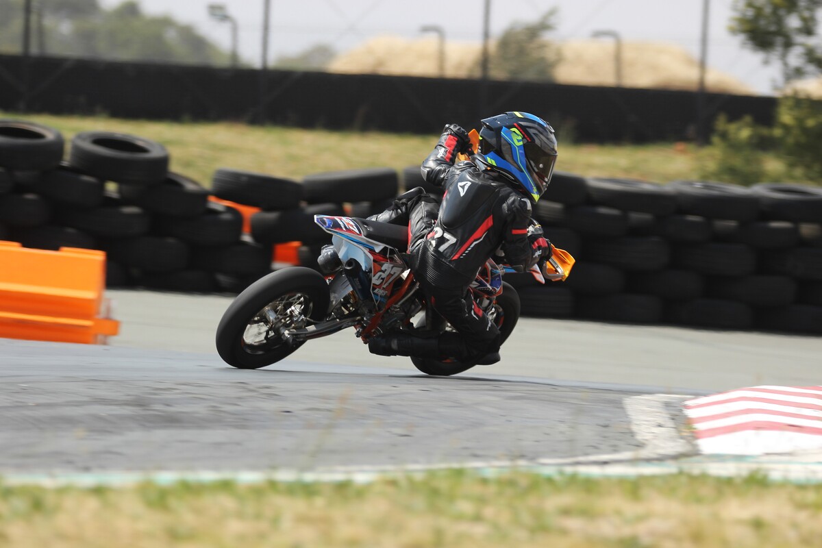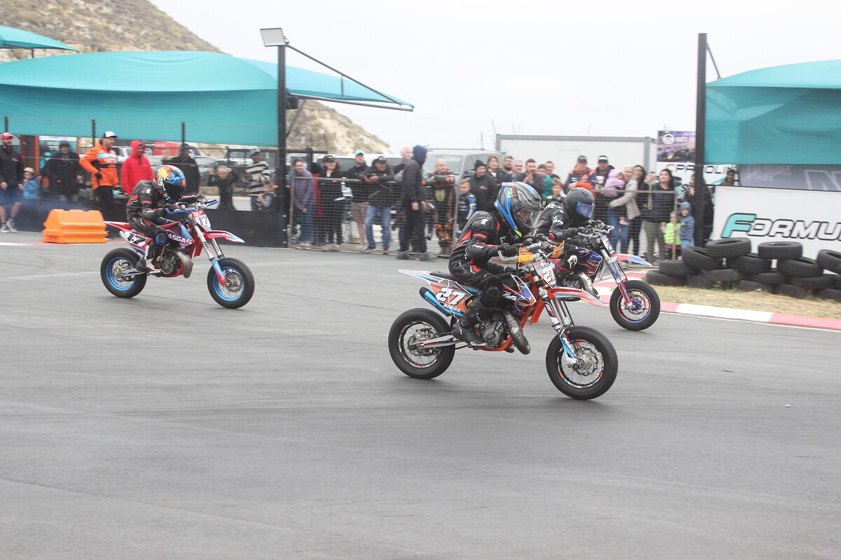 SM Junior 50cc Heat 1 The youngsters lined up with #17 Liam Bronkhorst on pole position. Bronkhorst and #27 Kiros Taliotes had a fantastic dice throughout the heat. Further back, #4 James Nijmeijer and #Zian Andalaft were also impressive. Taliotes crossed the line in 1st, followed by Bronkhorst in 2nd, and #550 Marnitz Otten in 3rd.