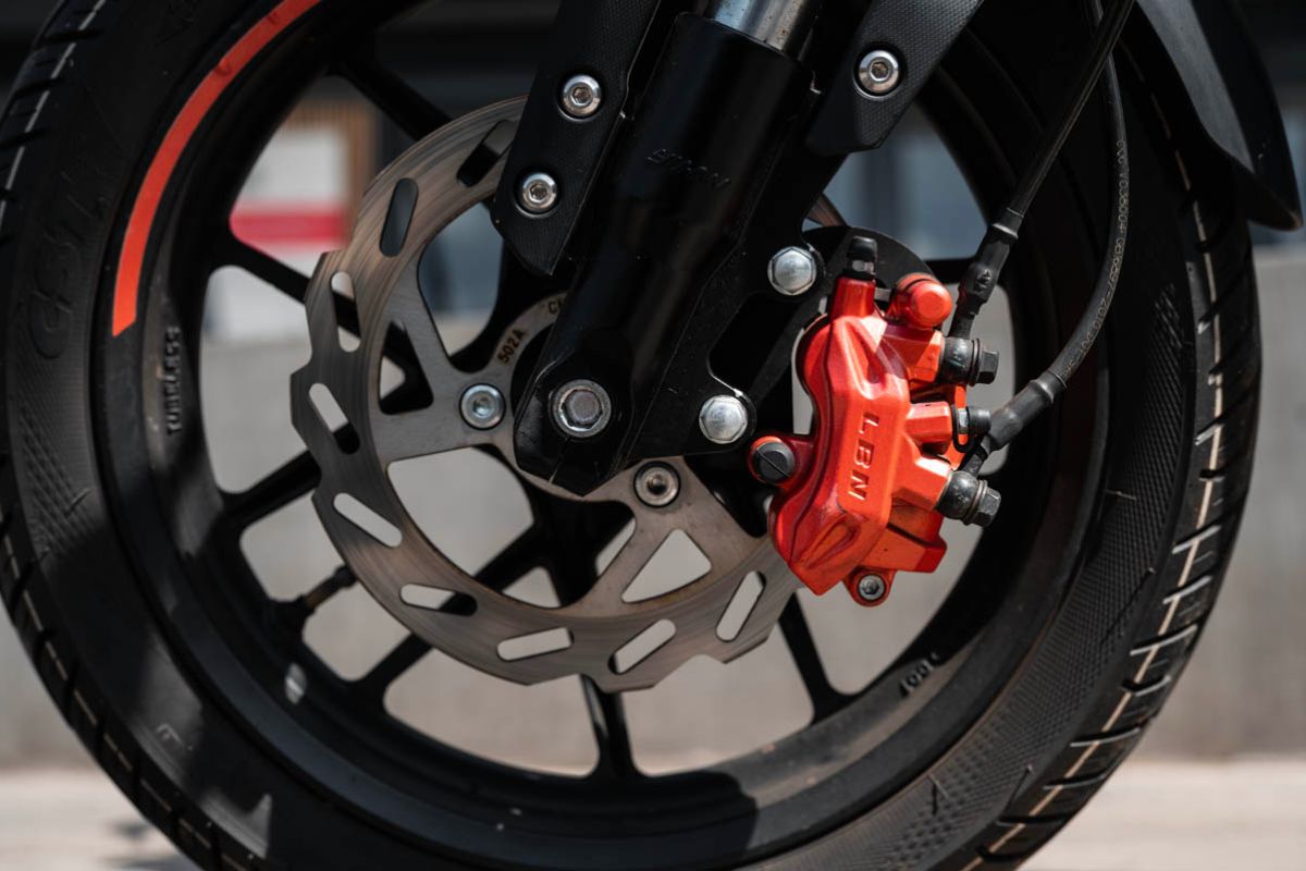 We appreciate the fact that this bike comes with motorcycle components rather than parts that are adapted from the bicycle trade, the brakes and suspension feel good on the road.