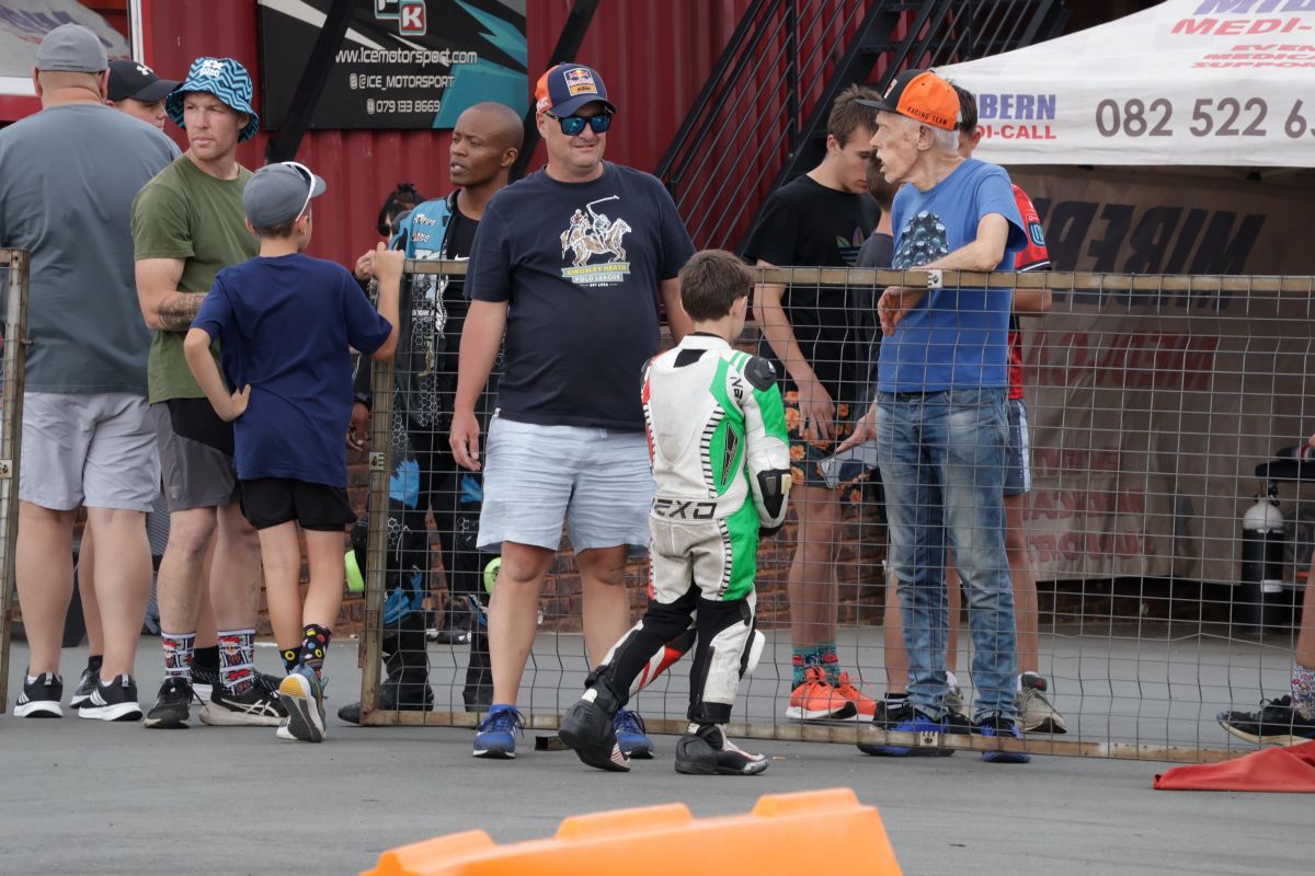 Heat 1 Both classes lined up with #22 Cayden Robert absent. #41 Jason van Breda led into turn one, but by lap three #13 Ryan van Nieuwkerk had taken control. The race featured tight battles throughout the field. Van Nieuwkerk claimed victory ahead of van Breda, with #99 Adam Naidoo third.
