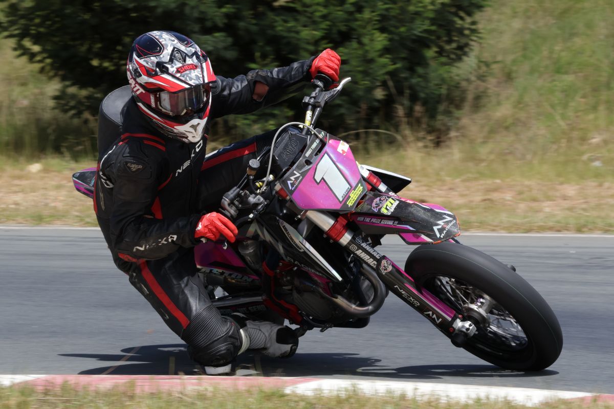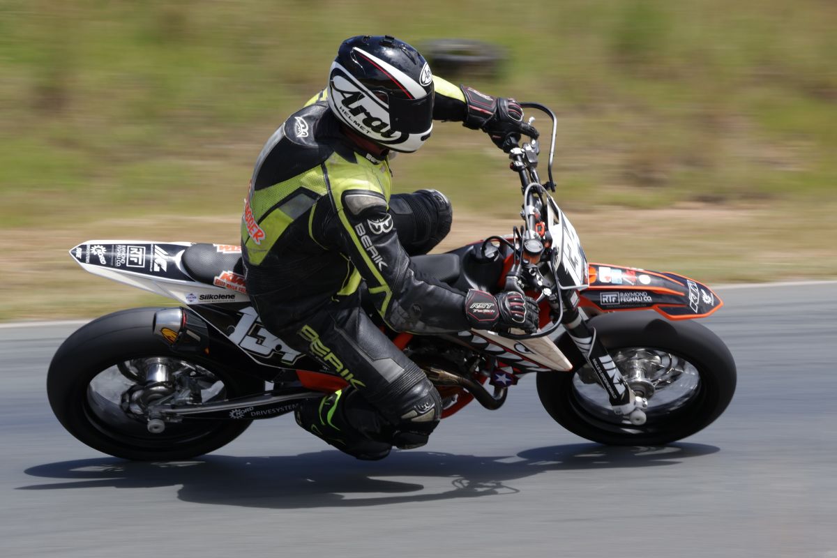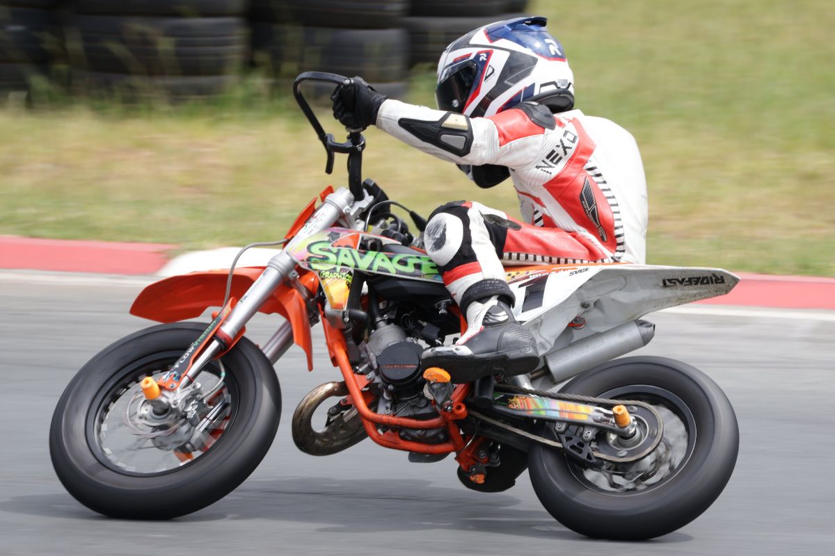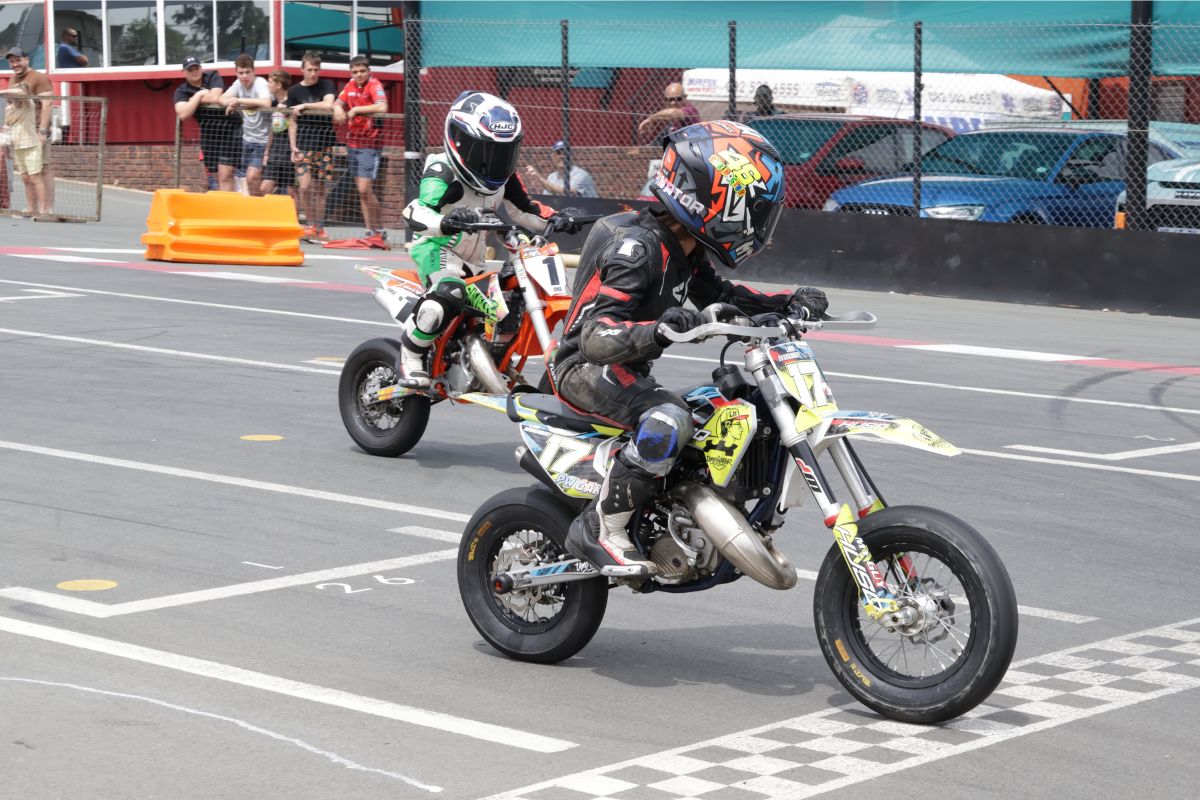 Heat 1 As the flag dropped, the sound of motards filled the circuit. Van Nieuwkerk led from turn one and controlled the race to win. Nesbitt finished second, with #18 Hunter Dreyer third.