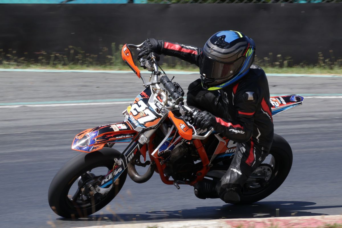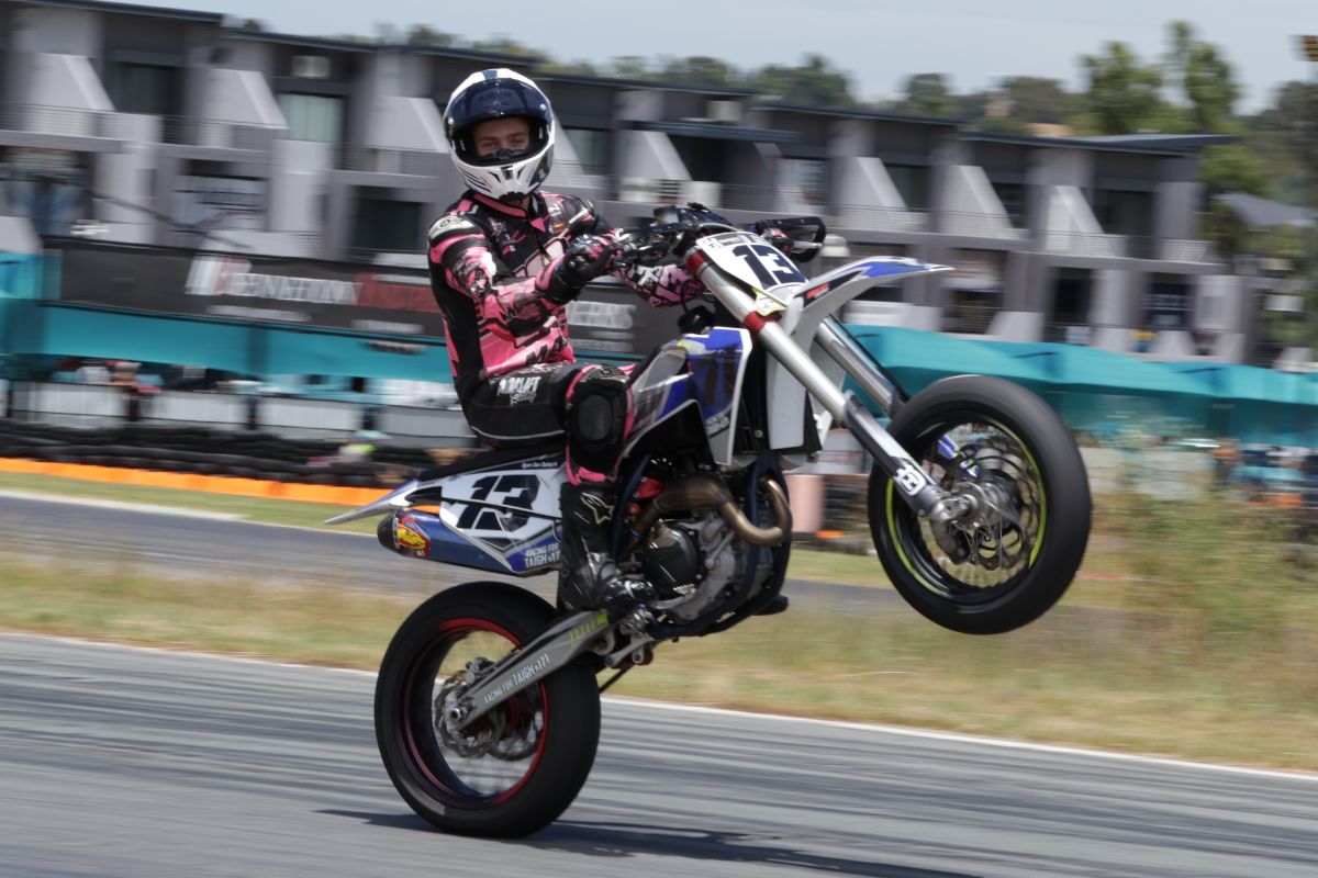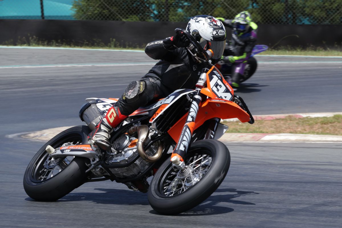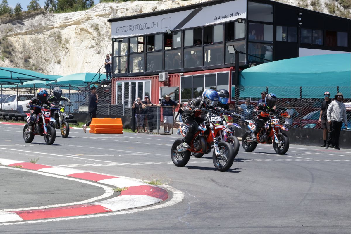 Heat 1 As the flag dropped, the sound of motards filled the circuit. Van Nieuwkerk led from turn one and controlled the race to win. Nesbitt finished second, with #18 Hunter Dreyer third.