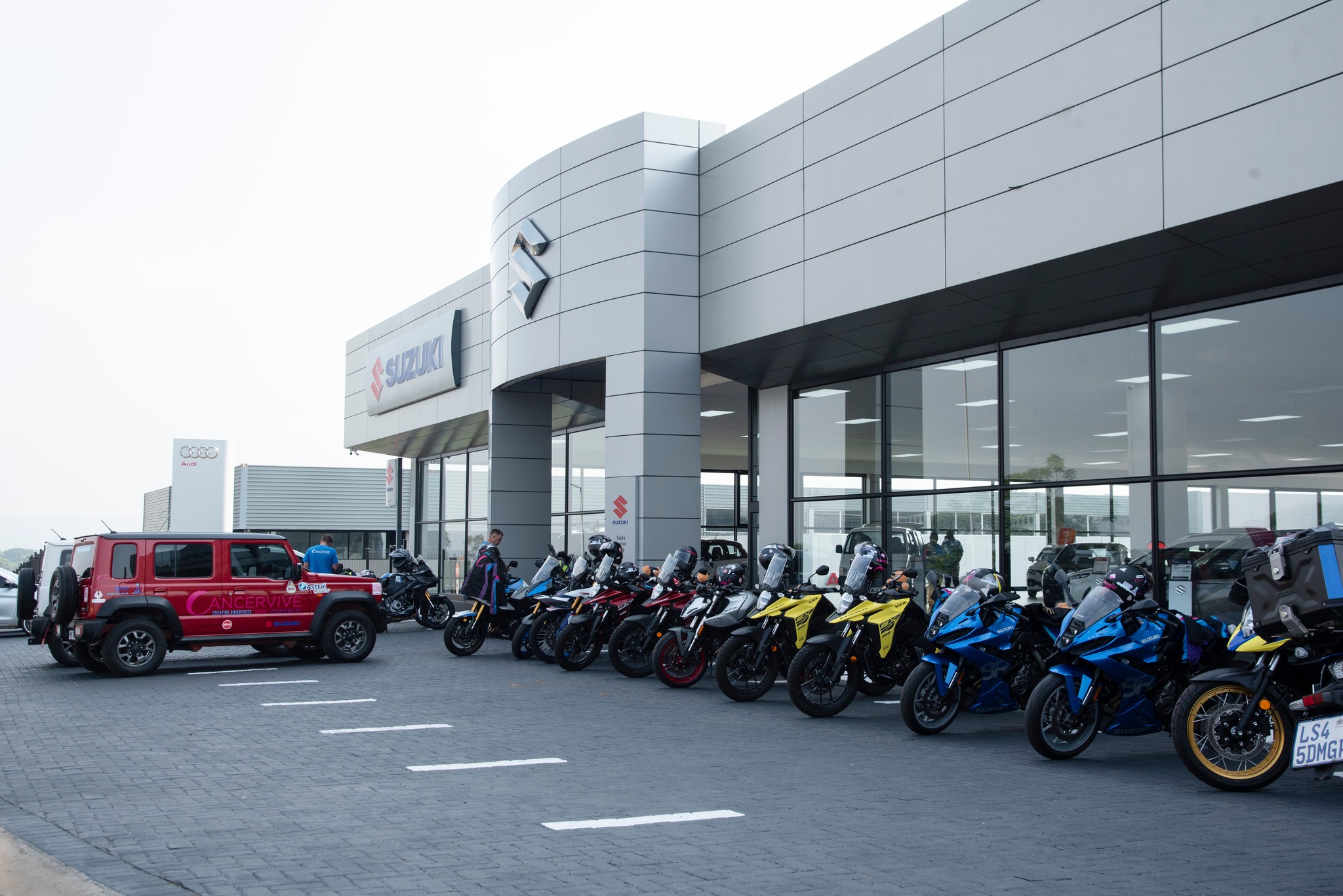 Monday was a full day: The guys stopped in at the local Suzuki Newcastle dealership for coffee before heading onwards to a rural school, Ziphakamiseni Secondary school, where the team put on another awareness show. To watch the kids interacting was fantastic.