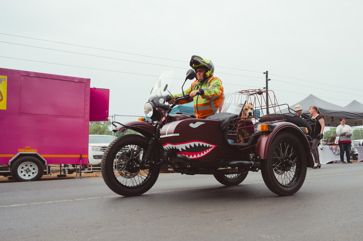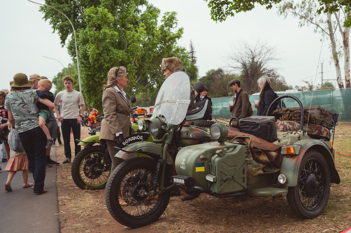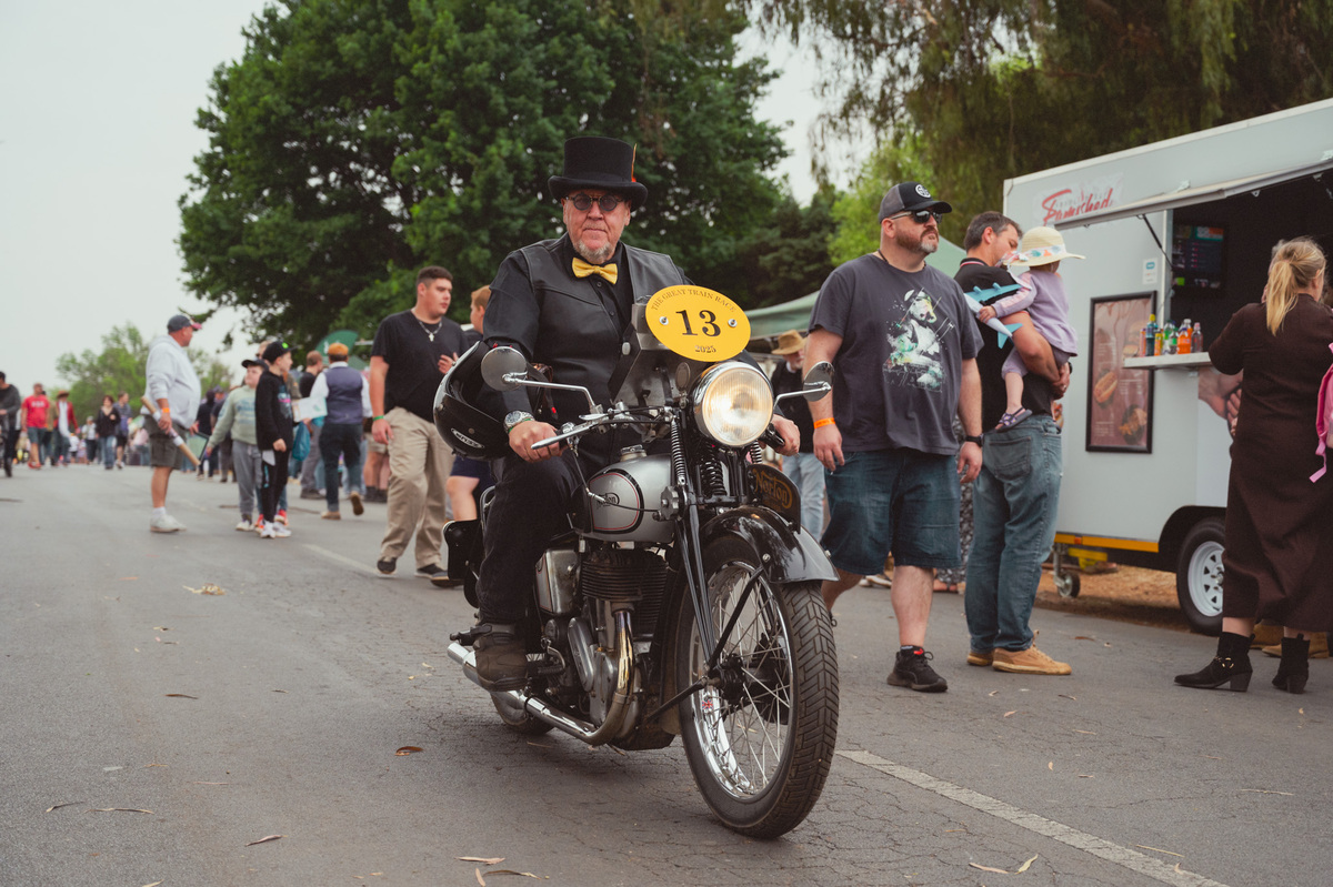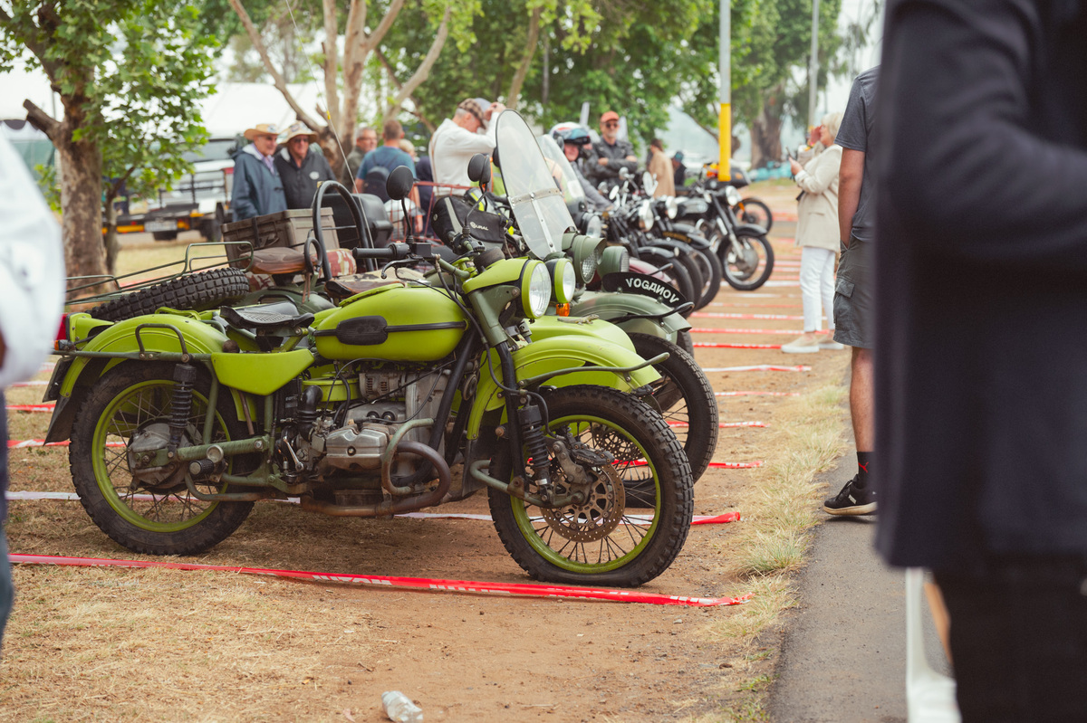 We were greeted at the gate by a cool collection of Pre-war motorcycles – and we wouldn’t be able to tell you what everything was, but it is just so cool to see so many of our modern day motorcycles predecessors bubbling along with the owners proudly dressed to the nines to fit the bikes era..