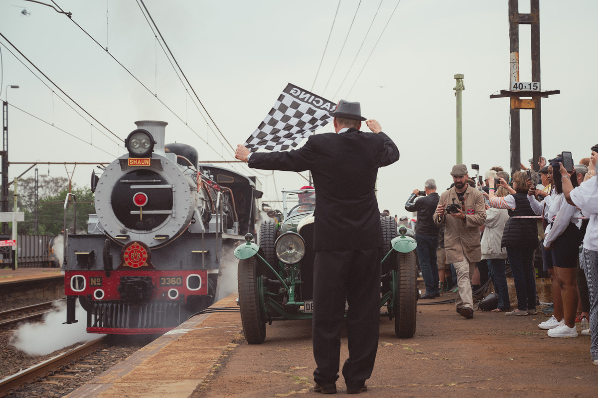 In the far distance we heard whistle… and we noticed great plumes of steam rising up into the overcast highveld air. It was a rush to the old Heidelberg platform to get the best view as a live re-enactment of a 1930 wager between a Woolf Barnato’s Bentley Speed Six and the luxurious Le Train Bleu, a famous French overnight express trainrace drew to its conclusion.