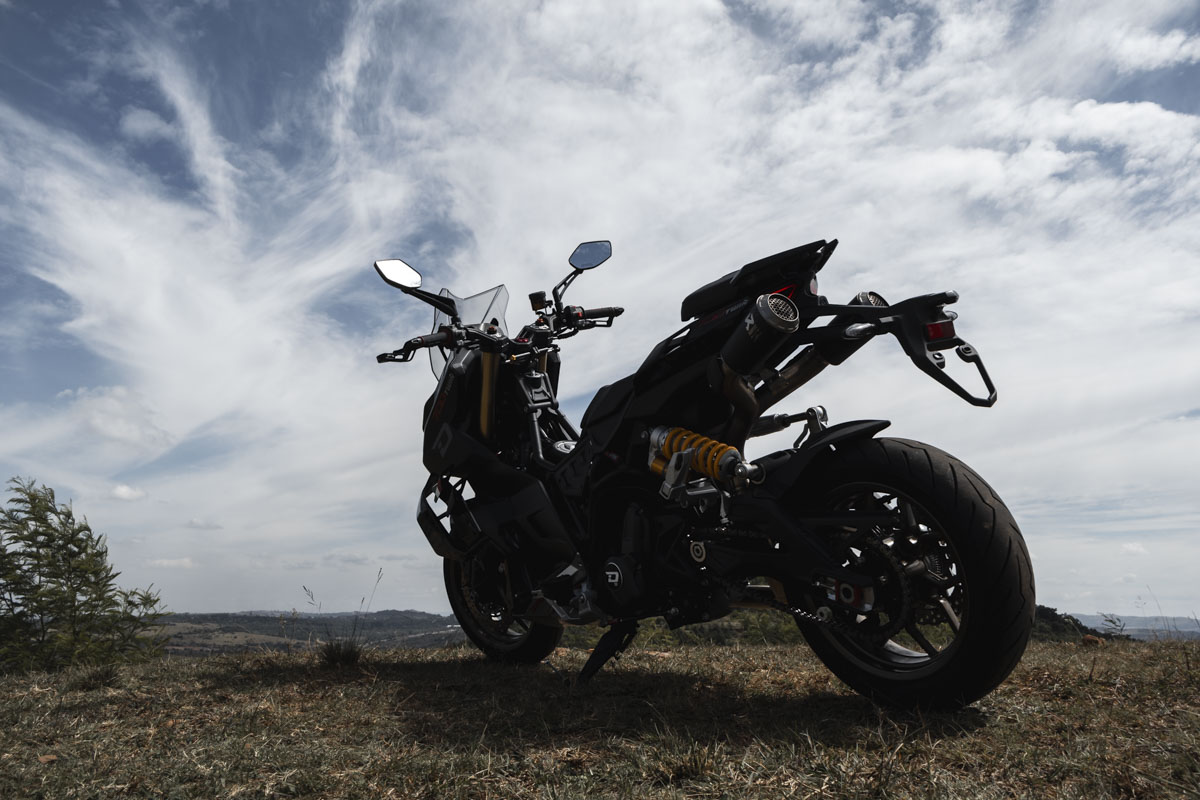 Riding her is like a million bucks, firmly sprung, undeniably racey, polar opposite to the softly sprung commuters and commercial machines that you might have ridden in the past. It’s adventure bike comfortable and spacious, racey and insanely good fun.